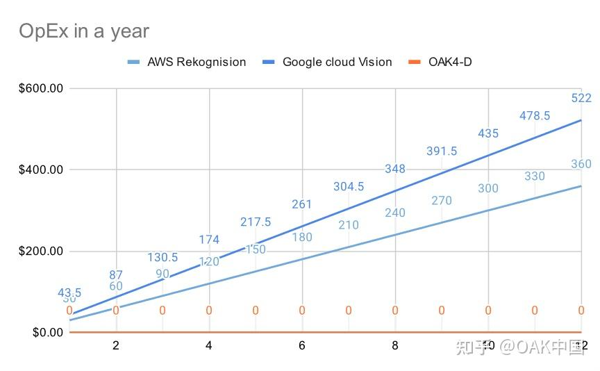 因此,即使对于“简单”的质量检查/条形码扫描传送带场景,每天只有1000件产品的云推理,也很快成为每年数百美元的常态化运营费用(OpEx)项目。随着吞吐量的增长(更多的传送带、更多的生产线、更多的站点),这些每1000次的请求费用与您的数量呈线性关系,这与边缘优先的方法(例如OAK 4 D)不同,在这种方法中,您的推理成本实际上受到您部署的硬件的限制。
