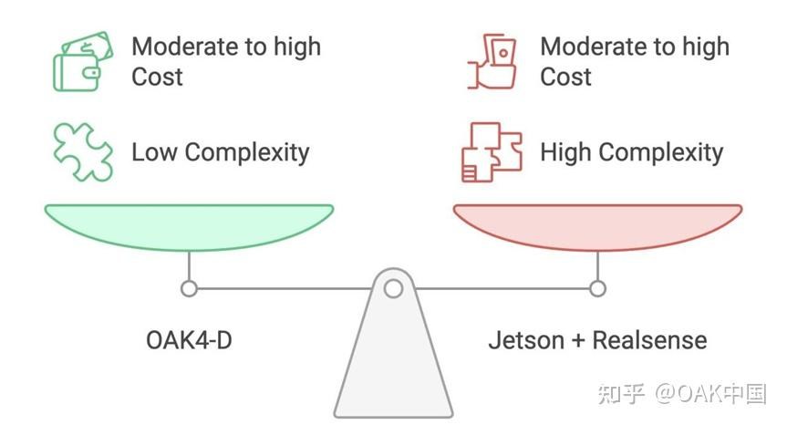 🟢 Jetson + 深度相机:只有当你有一个强大、齐全的工程开发团队,并且对最大灵活性有非常具体的需求(例如,融合大量异构传感器,运行非标准GPU工作负载),或者你需要极端的设备上神经网络推理来实现高级机器人/推理,这需要一个顶级(且昂贵)的Jetson模块,并且你准备好处理多设备系统的复杂性、维护和部署开销。